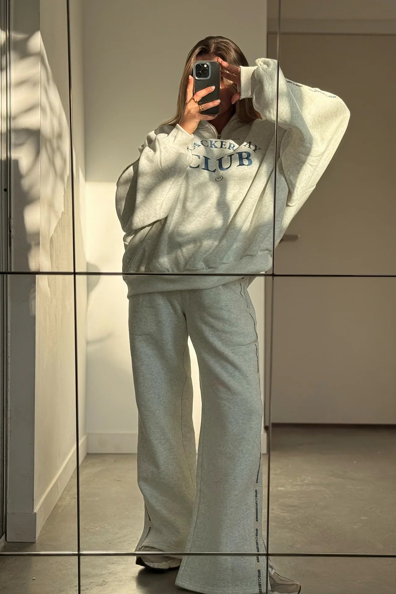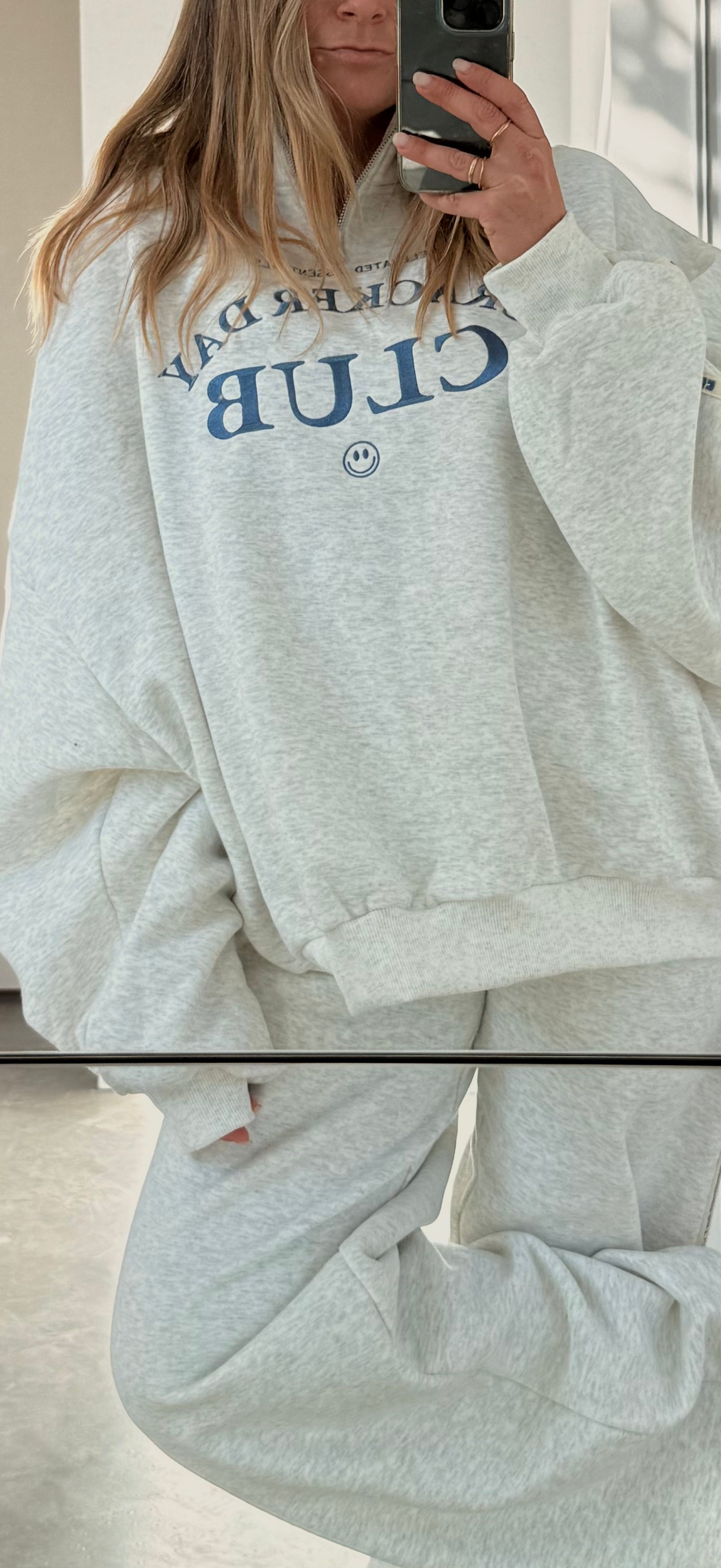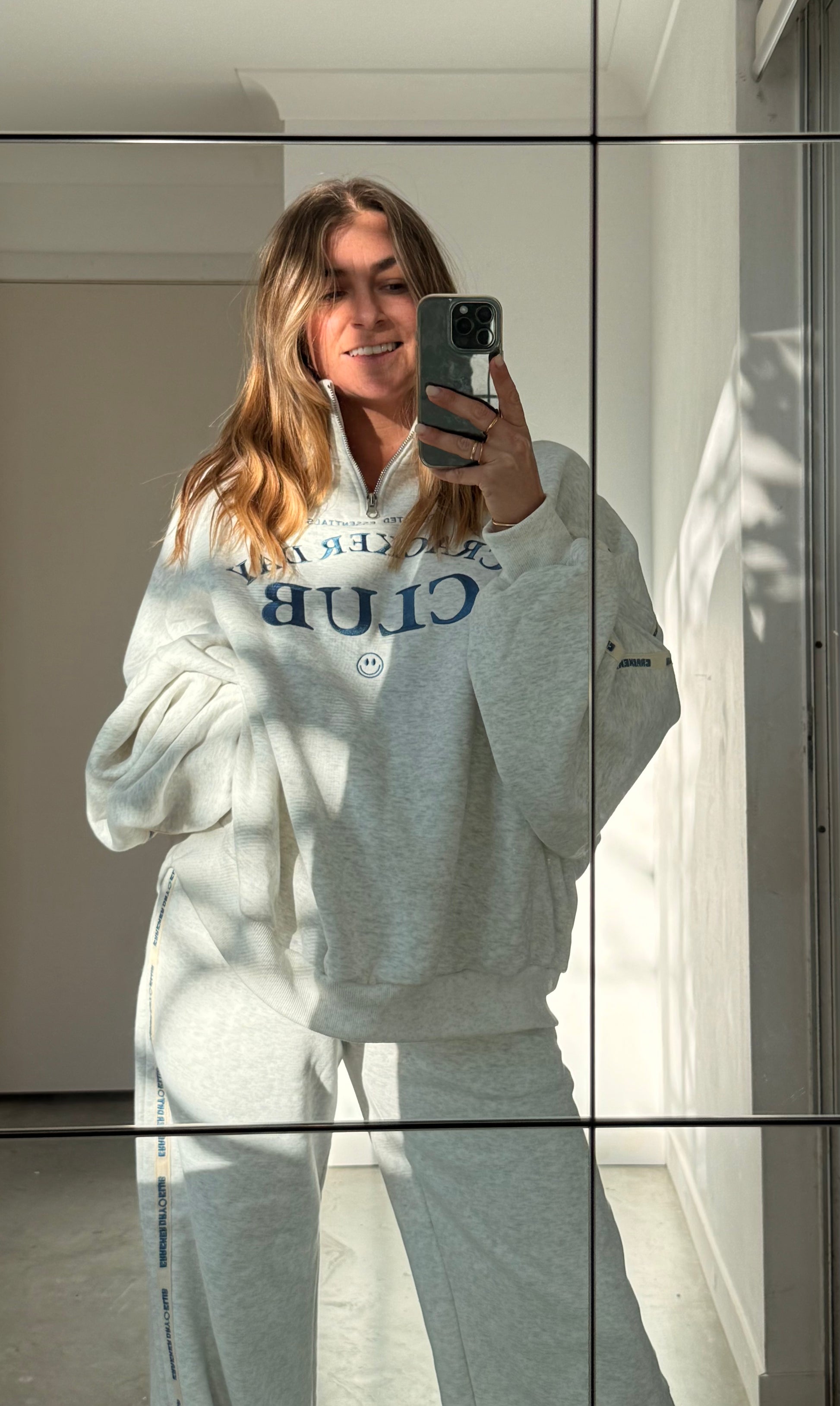 Effortlessly oversized and endlessly comfortable, the CLOUD Racer 1/4 Zip Sweater in Grey Marle is your new go-to for these cooler months. Made from premium heavyweight terry cotton, it features Cracker Day Club’s signature contrast embroidery, a bold collegiate-style logo, and our signature racer piping.