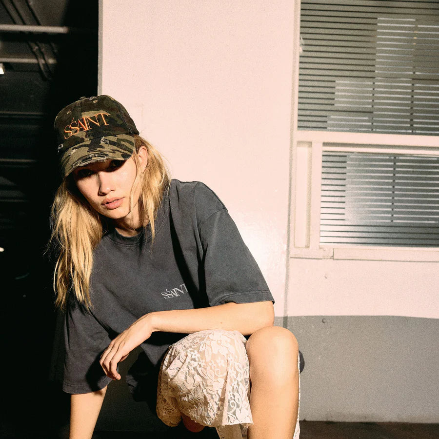 SSAINT - No Vacancy Tee Charcoal Acid Wash